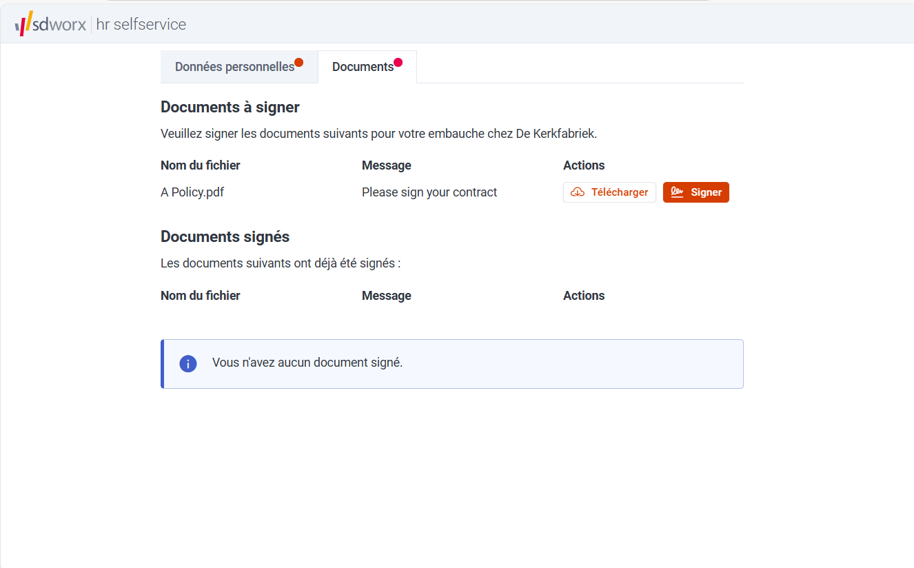 Les documents signés seront automatiquement enregistrés dans le dossier personnel.